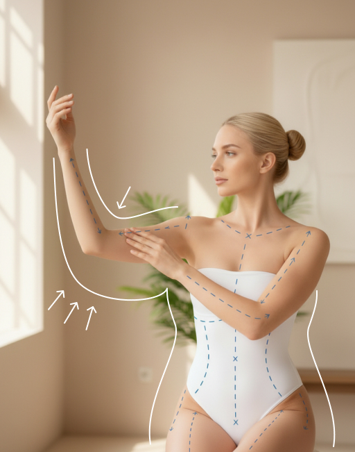 Пластика тела помогает скорректировать контуры фигуры, когда спорт и питание уже не дают желаемого эффекта или есть последствия резкого снижения веса, беременности, операций.